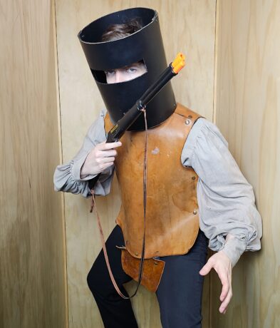 Authentic gold/tan suede lederhosen with green trim, mens shirt, wig and hat